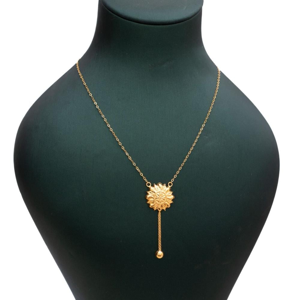- تصميم أنيق: سلسلة رفيعة تتوسطها دائرة مزخرفة بلمعة ذهبية راقية.