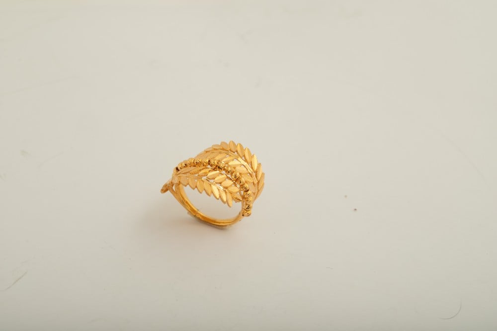 - On your fingers. This ring is made of 21-karat yellow gold.