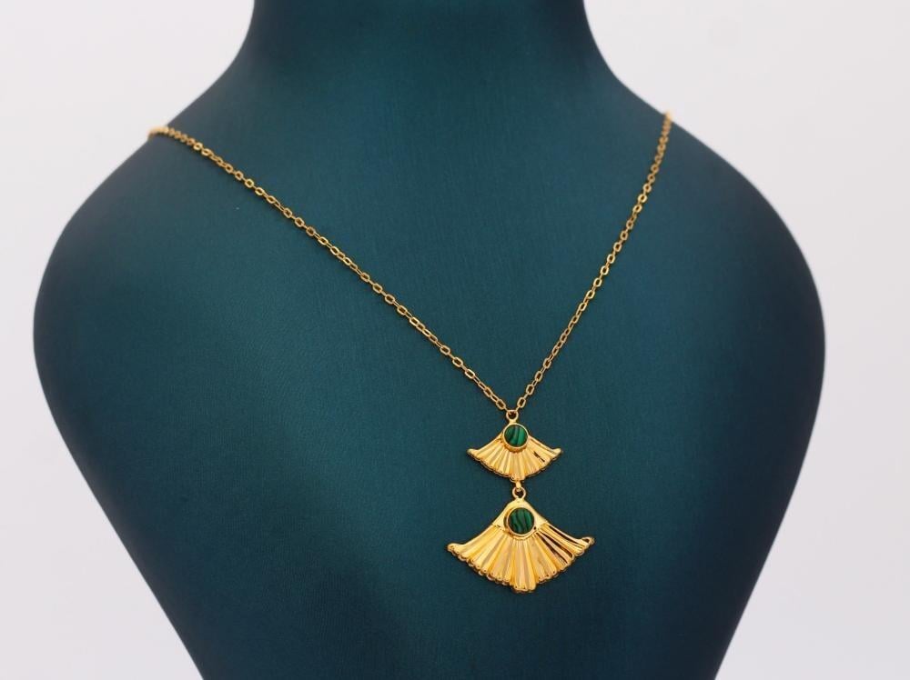 Golden brush necklace with elegant two fans design ✨